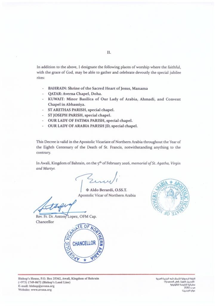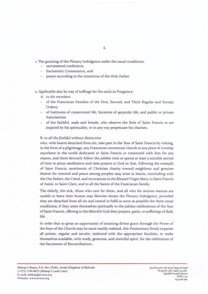 Decree on Special Jubilee – St. Francis